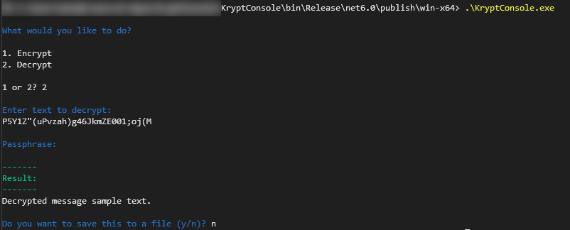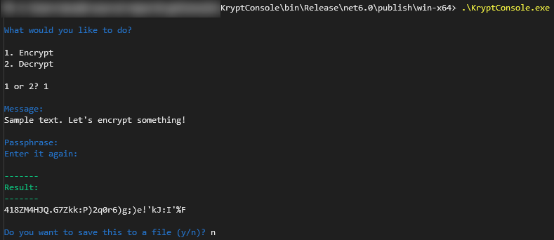 Console application using Krypt2Library