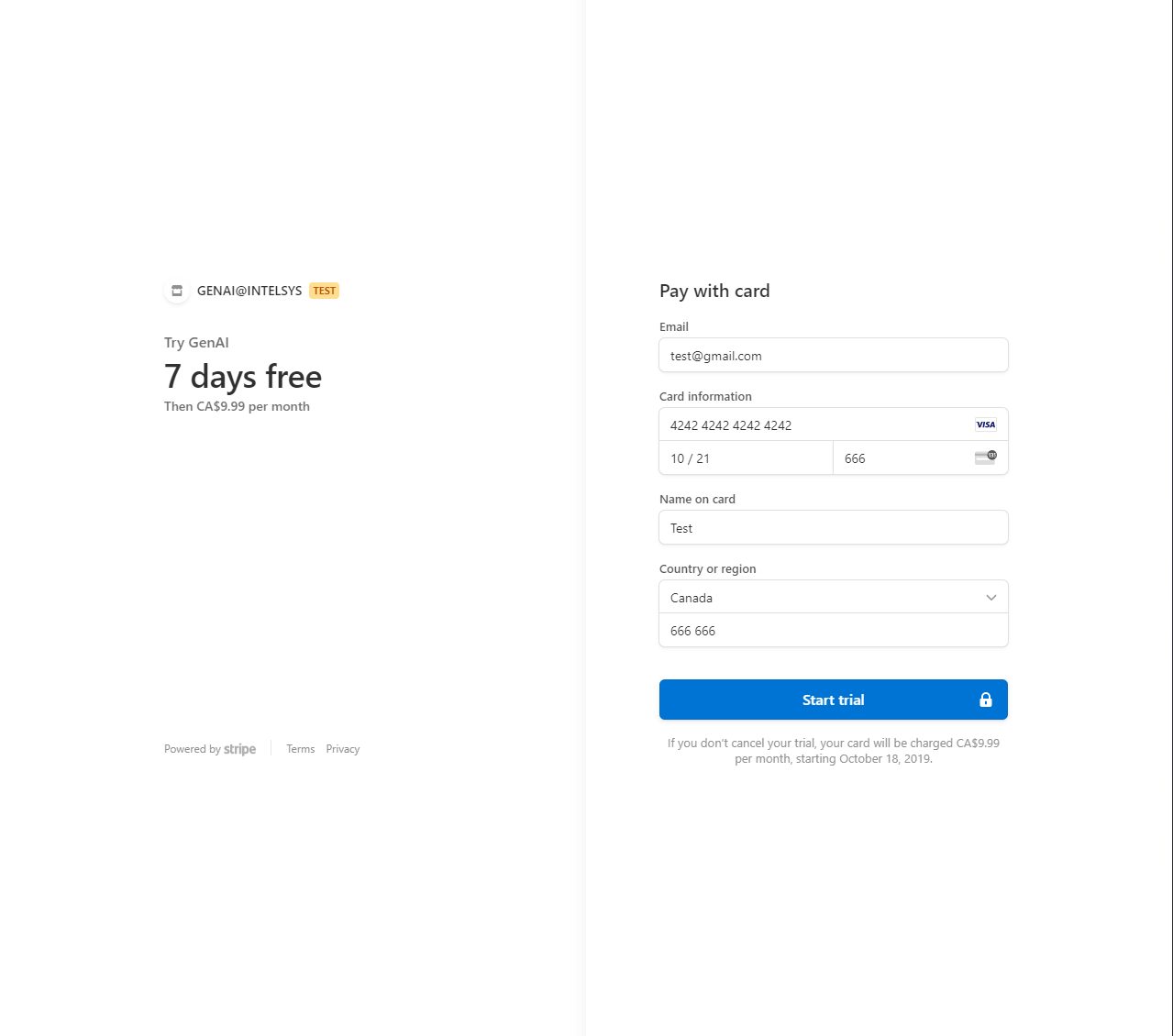 Account / Subscribe action -> Stripe payment